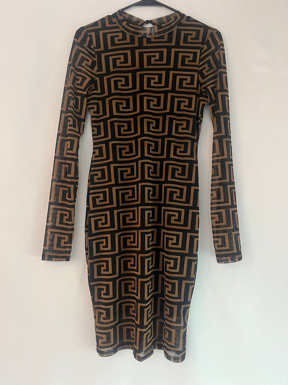 Women’s Elegant Tan & Black Print High Waist Slim Fit Fall Dress-Long Sleeve
